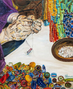 Les femmes modèles de grâce et de féminité sont aussi les artisanes de leur parures… Magie multicolore des perles, trésor millénaire des femme… Miracle des bains de teinture pour la confection de voiles chamarrés… Coiffures de tresses finement enroulées comme brodées autour de la tête… Arabesques de henné pour des parures raffinées des pieds et des mains.