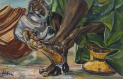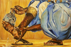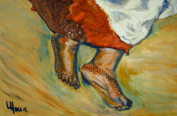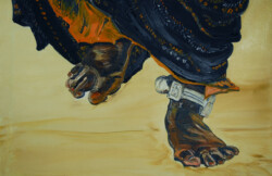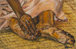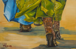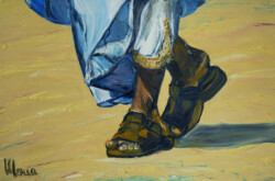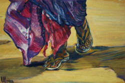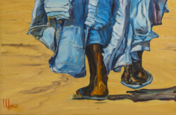 Portraits de pieds comme une chorégraphie nomade… en marche dans la lumière réfléchie du sable brûlant, ou, bijoux sous la fluidité des voiles… Des pieds lavés, caressés sous un filet d’eau versé avec parcimonie dans le rituel des ablutions… Des pieds révélateurs d’identité sociale.